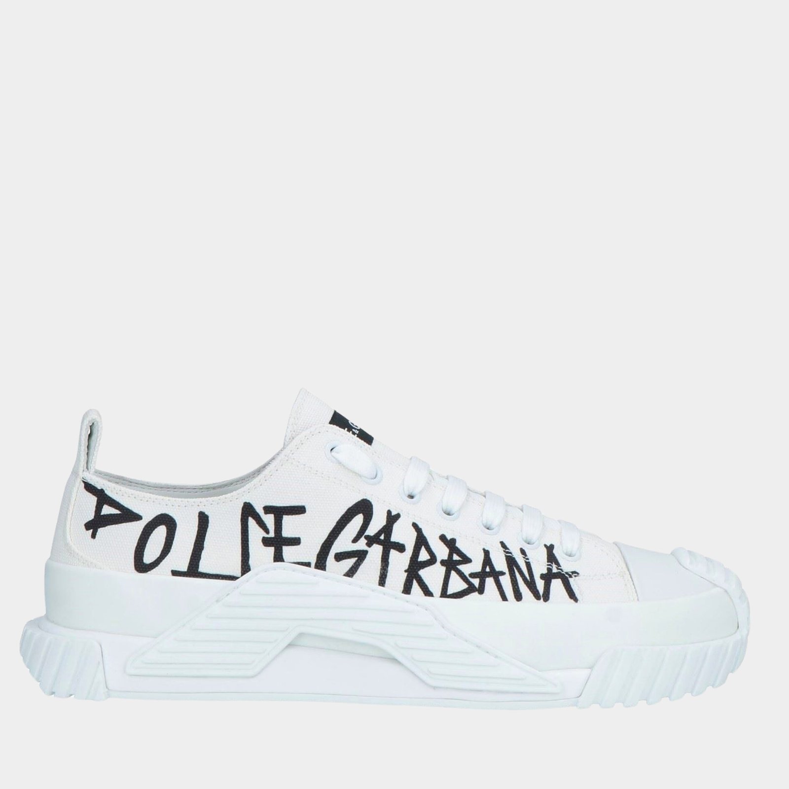Baskets Dolce & Gabbana en toile et cuir de veau, au design raffiné et moderne. Confortables et élégantes, elles associent une semelle caoutchouc adhérente et des détails de logo subtils, pour un style chic et décontracté au quotidien.