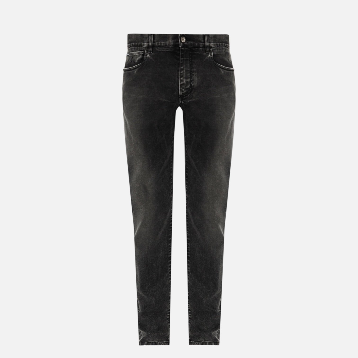 Le gris foncé est actuellement très prisé dans le denim masculin de luxe, comme l'illustre ce modèle Dolce & Gabbana. Cette couleur offre une sophistication naturelle et représente une évolution élégante du denim traditionnel, particulièrement appréciée dans les garde-robes contemporaines.