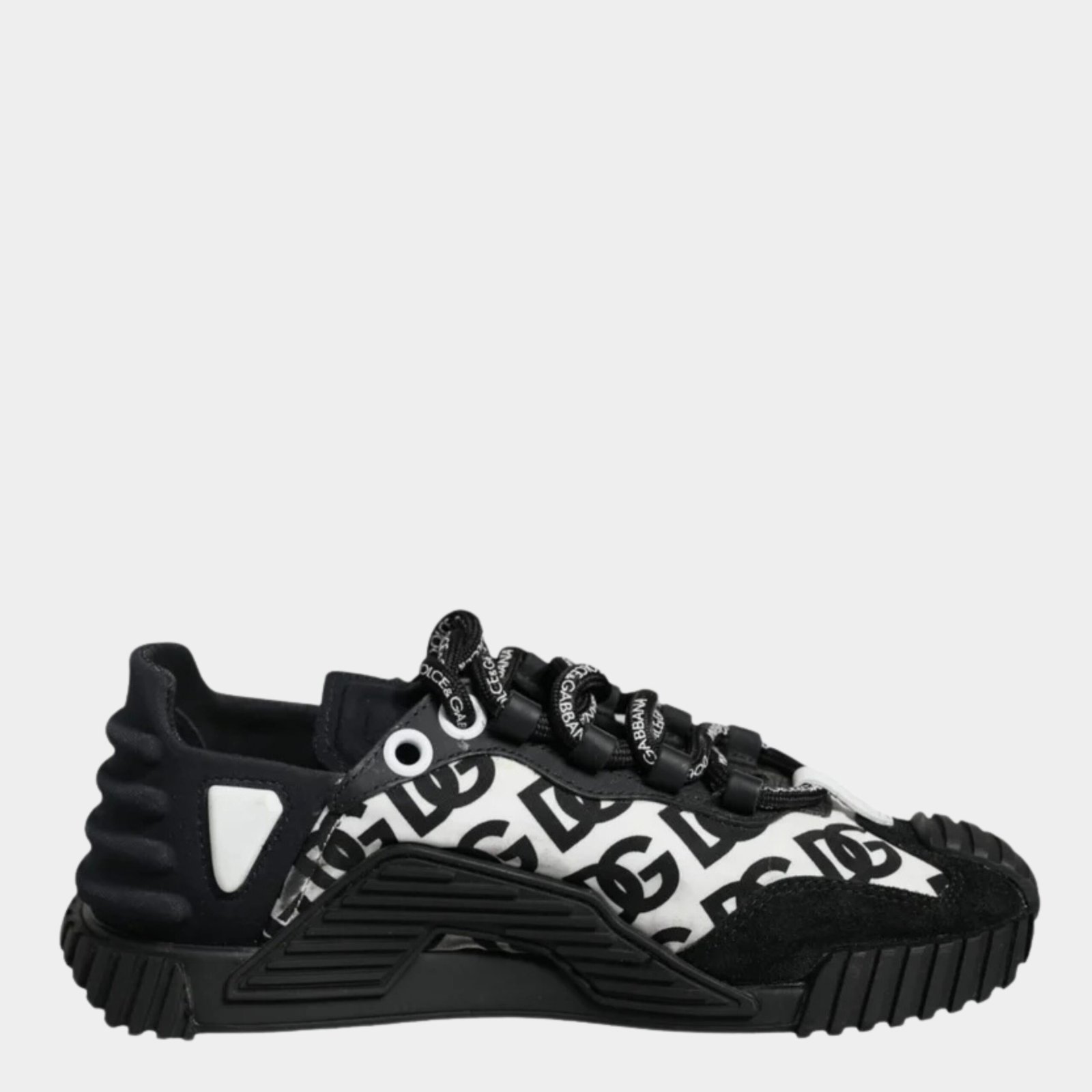 Baskets Dolce & Gabbana NS1 en nylon imprimé logo avec détails en cuir de veau et daim. Semelle ultra-flexible en caoutchouc, design futuriste inspiré du métavers. Fabriquées en Italie.