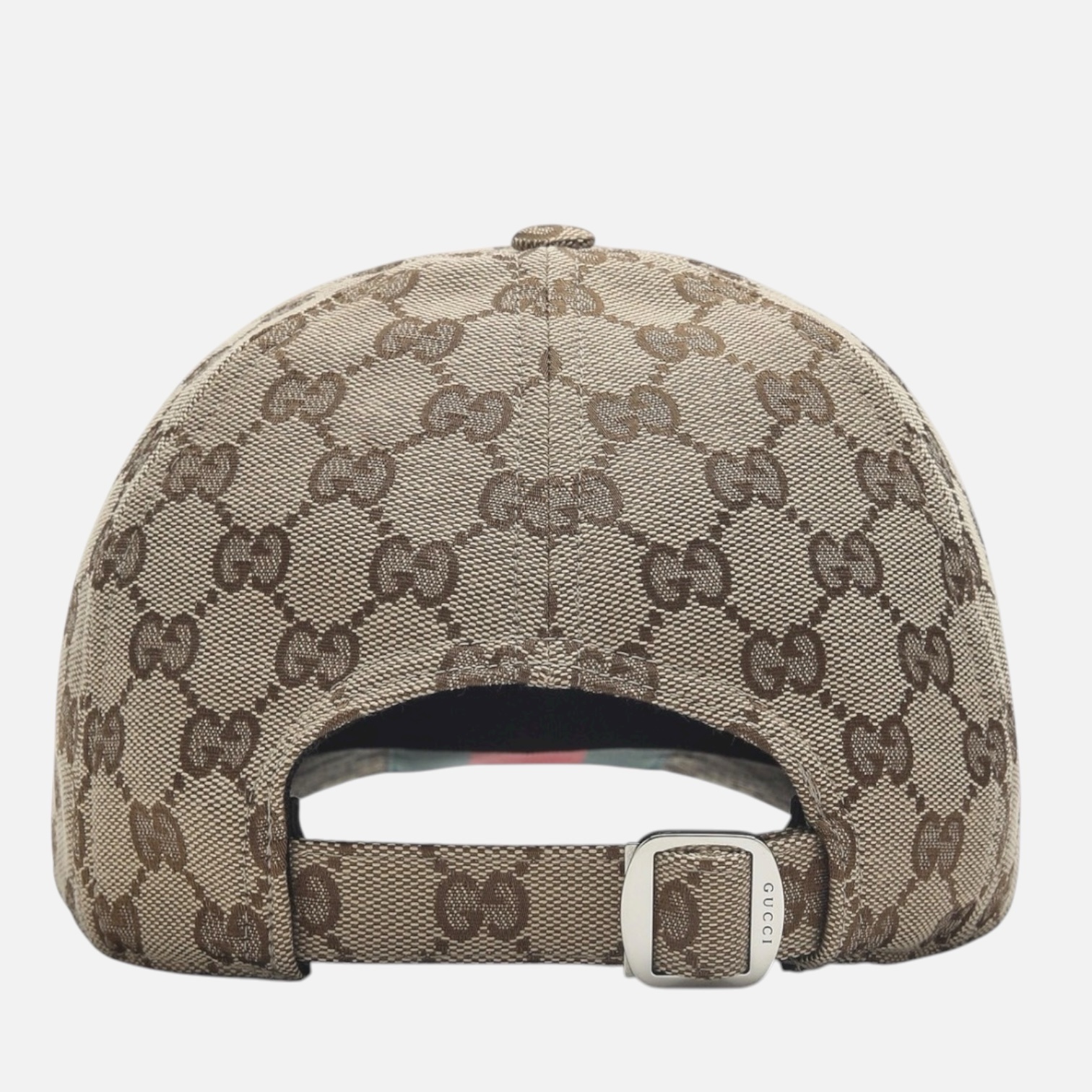 Casquette avec visière de Gucci en tissu GG beige, caractérisée par une fermeture à déchirure réglable au dos