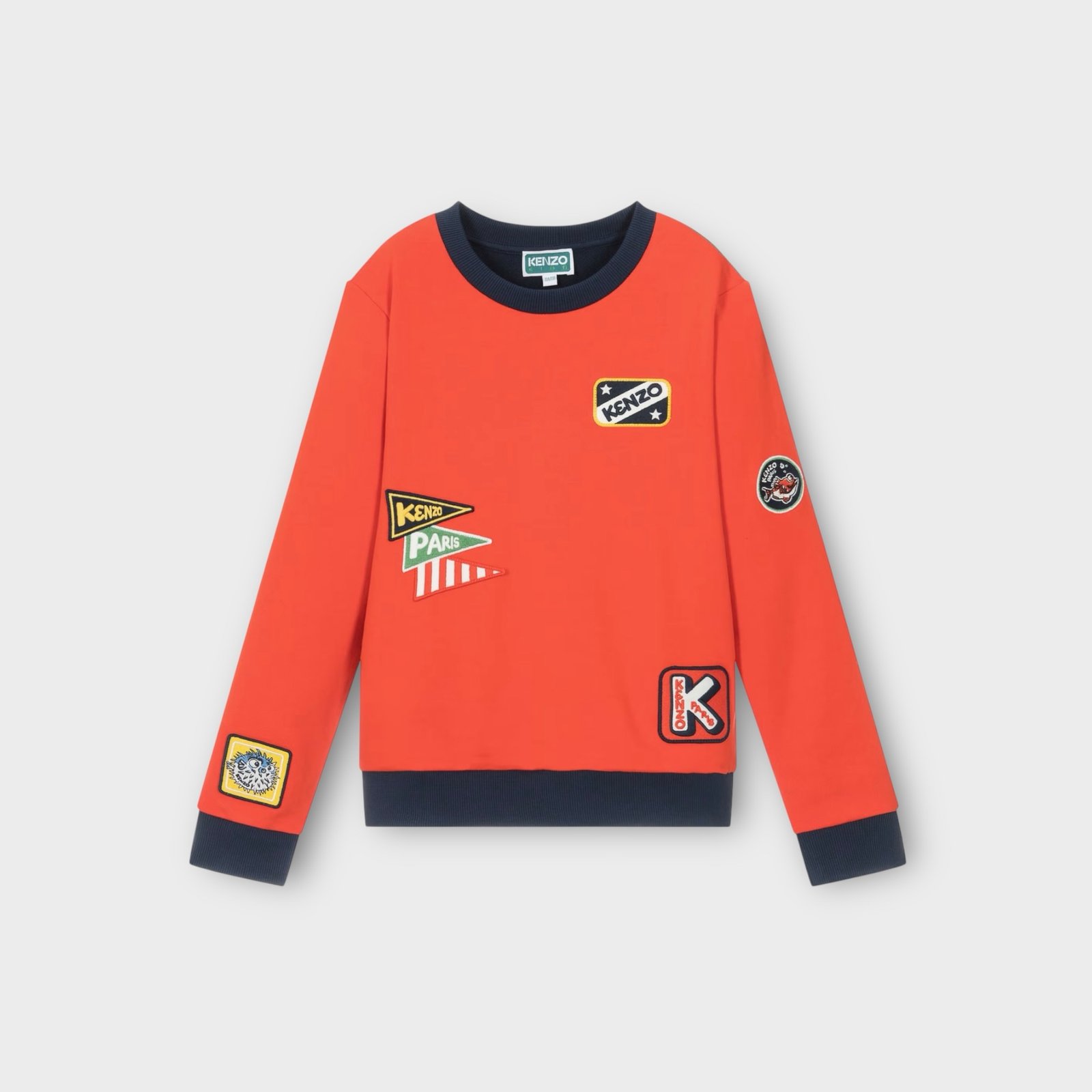Sweat-shirt rouge et marine pour ado garçon de la marque KENZO KIDS, au style résolument audacieux avec ses écussons logo style universitaire et son design colorblock saisissant. Confectionné en jersey de coton doux, il possède des manches longues, un col rond et des finitions côtelées décontractées pour un confort optimal. Idéal pour les sorties casual, ce sweat-shirt allie style et praticité.