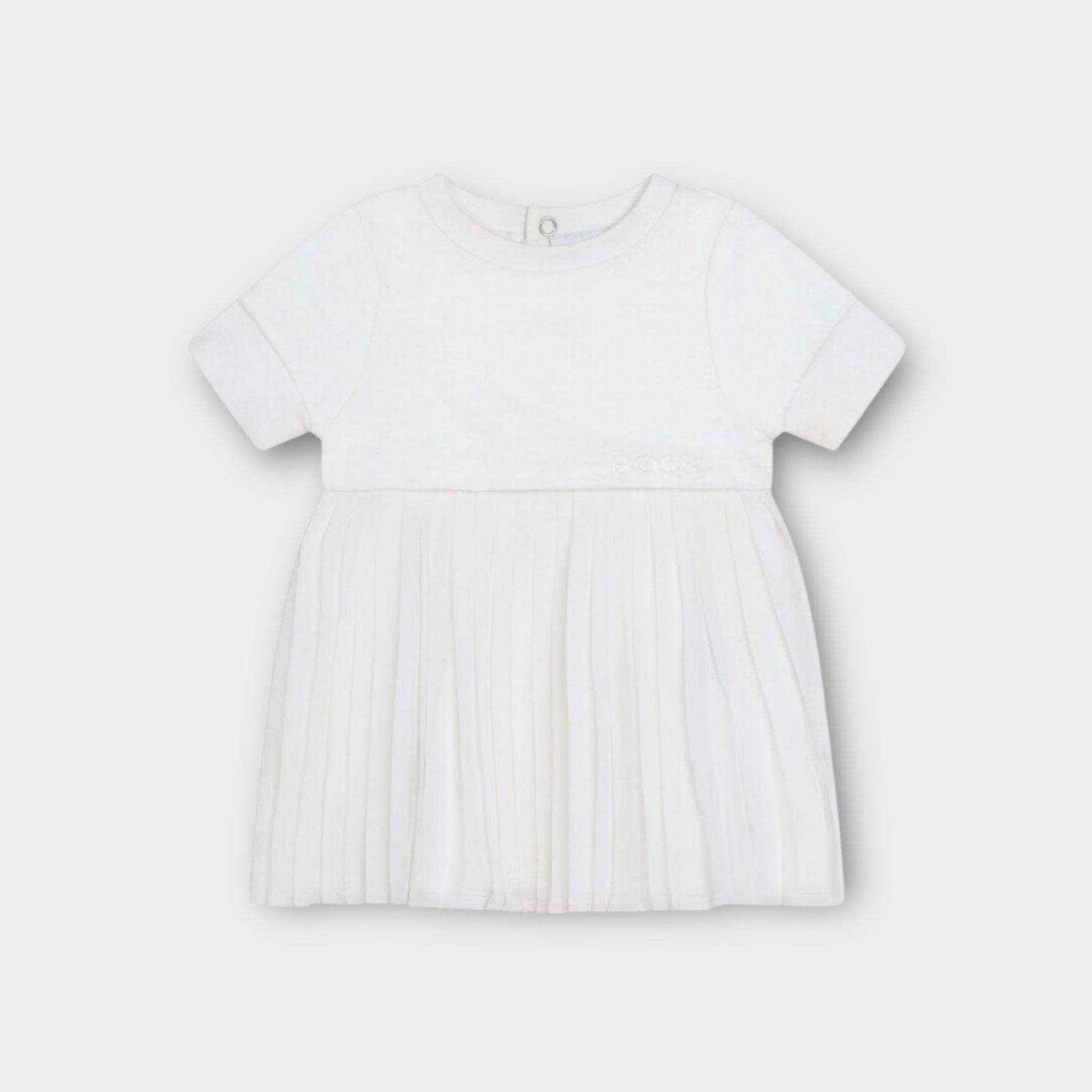 Une jolie robe BOSS pour bébé. Cette pièce emblématique ornée d’un logo brodé présente une jupe plissée et un haut en jersey de coton.