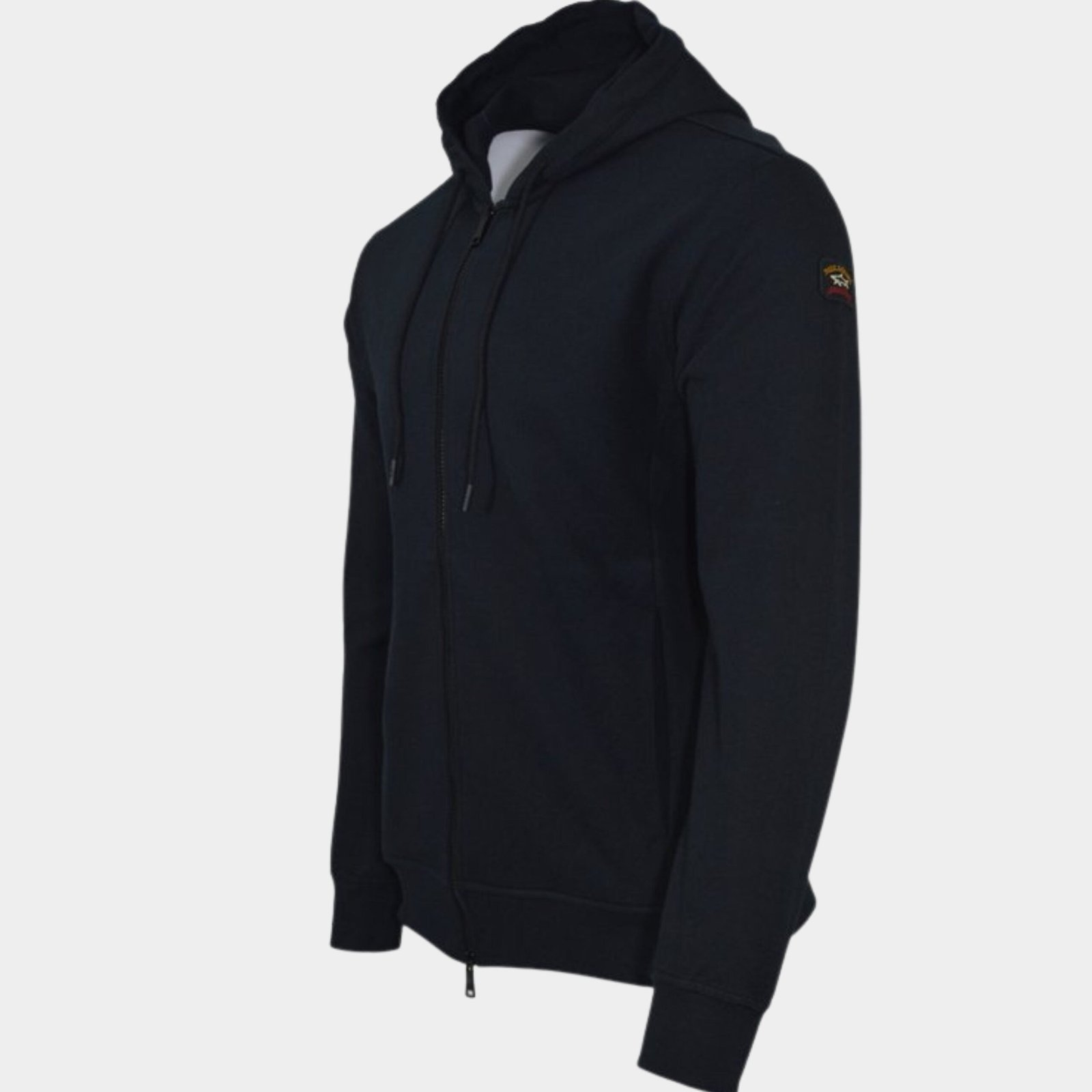 Son design se distingue par une fermeture éclair double face, pratique et polyvalente, ainsi qu’une capuche réglable par cordon de serrage pour un ajustement personnalisé. Les poches latérales ajoutent un aspect pratique, tandis que le logo Paul & Shark sur l’épaule souligne l’identité haut de gamme de la maison.